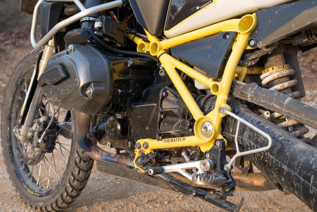 Hier kommt Touratech ins Spiel, das renommierte deutsche Unternehmen, das sich auf Teile, Zubehör, Fahrwerke und Ausrüstung für Abenteuerfahrer spezialisiert hat. Die Freunde Herbert Schwarz und Jochen Schanz gründeten die Firma, nachdem sie in den 1990er-Jahren gemeinsam Afrika auf zwei Rädern erkundet hatten. Heute zählt Touratech zu den angesehensten Namen der Motorradbranche und vertreibt seine Produkte in fast 100 Ländern.