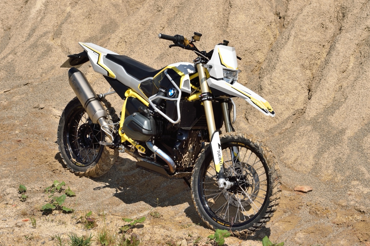 Das Designkonzept konzentrierte sich auf „Endurowandern“ – Abenteuerreisen mit starkem Fokus auf Offroad-Fahrten unter Verwendung eines extremen, aber funktionalen Motorradumbaus.